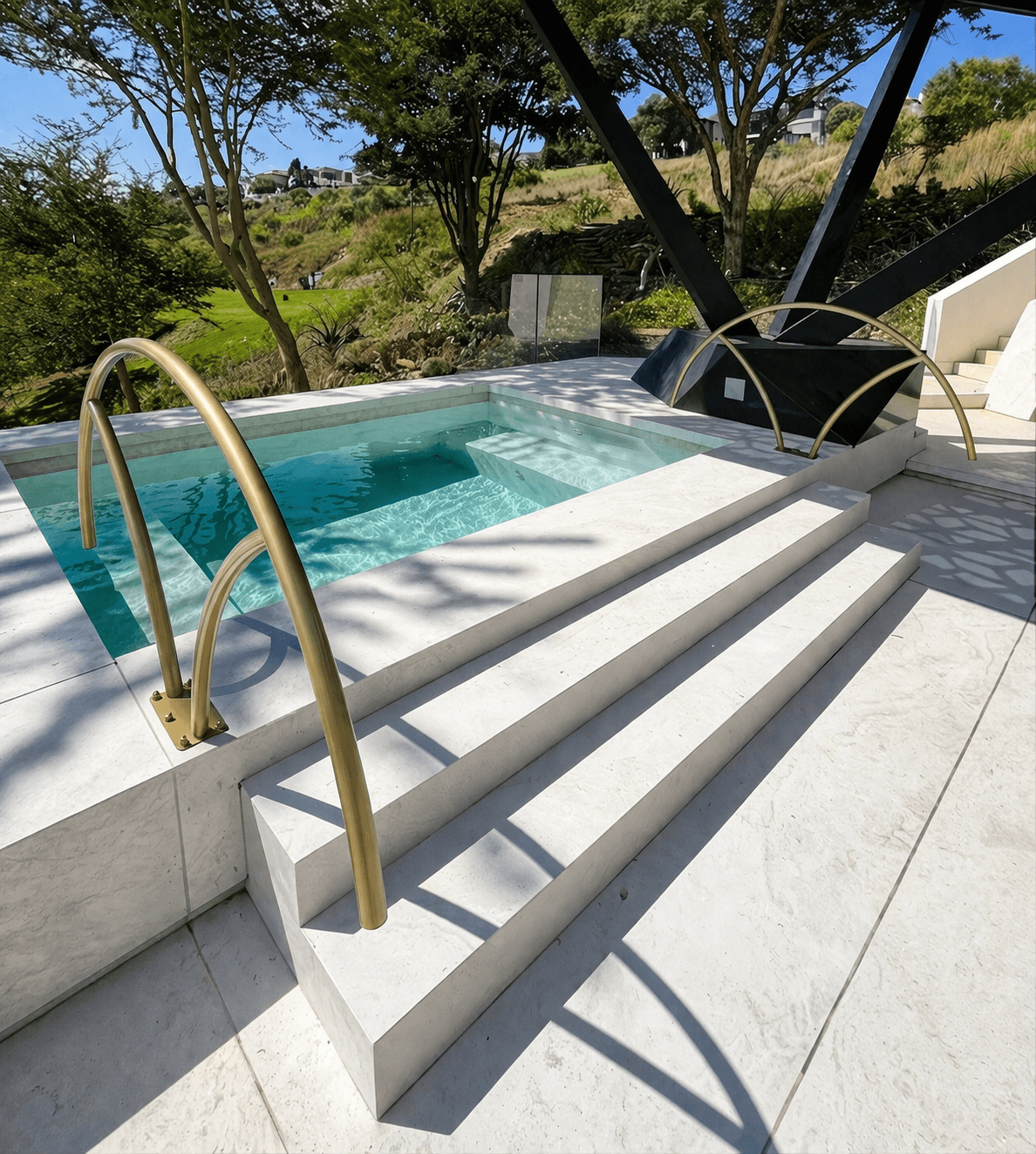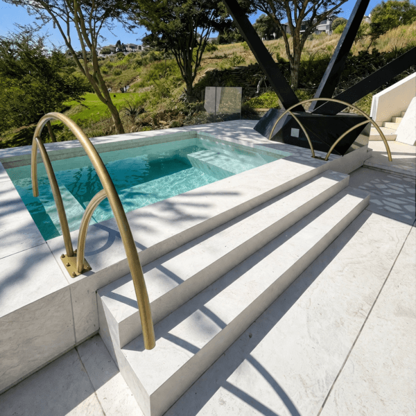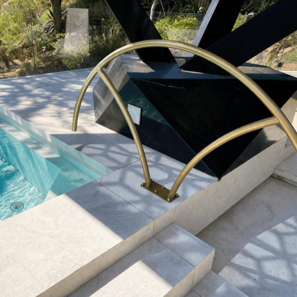 • Material: Stainless steel (Grade 304 available); electrostatic powder coating provides protection against salt-chlorinated pools and coastal environments; available in “Kruger Gold” & other custom colours